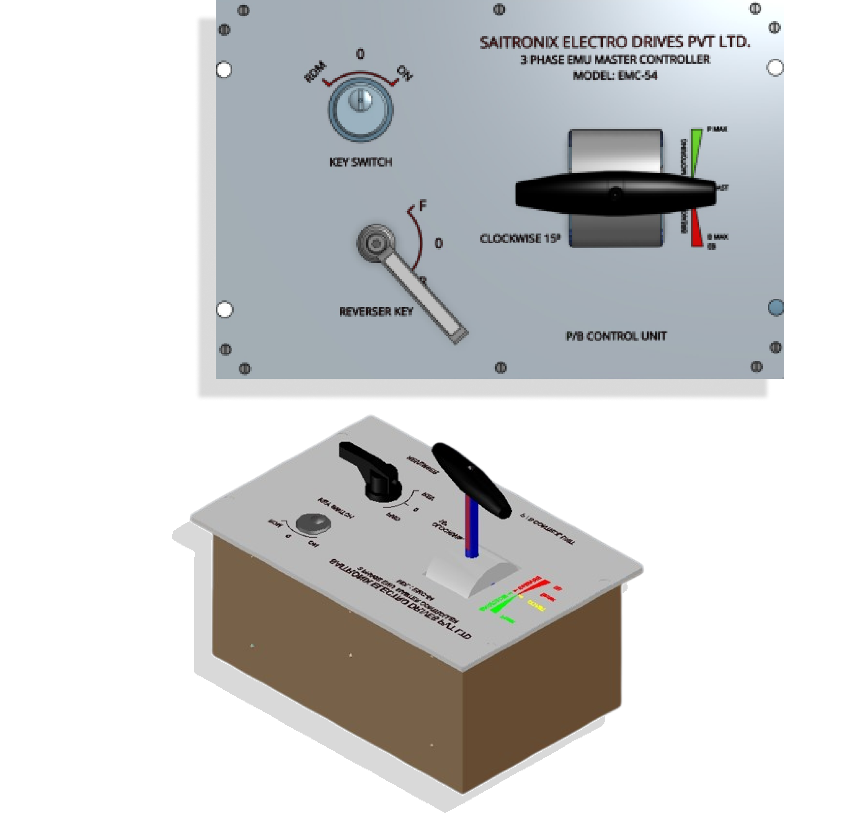Saitronix electro drives pvt. Ltd . has designed & developed the 3 Phase EMU Master Controller imbibing the above parameters into the system and also emphasizing the need to minimize the mechanical moving & rubbing parts and electrically more reliable switching contacts, to improve the reliability and to minimize the periodic maintenance.